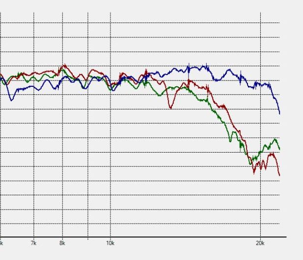 Pomiarów za dużo jeszcze nie porobiłem. Tu tylko on-axis porównanie pomiędzy K77 (alnico), K77 (ferryt) i DE120 w rzeczonej tubce.